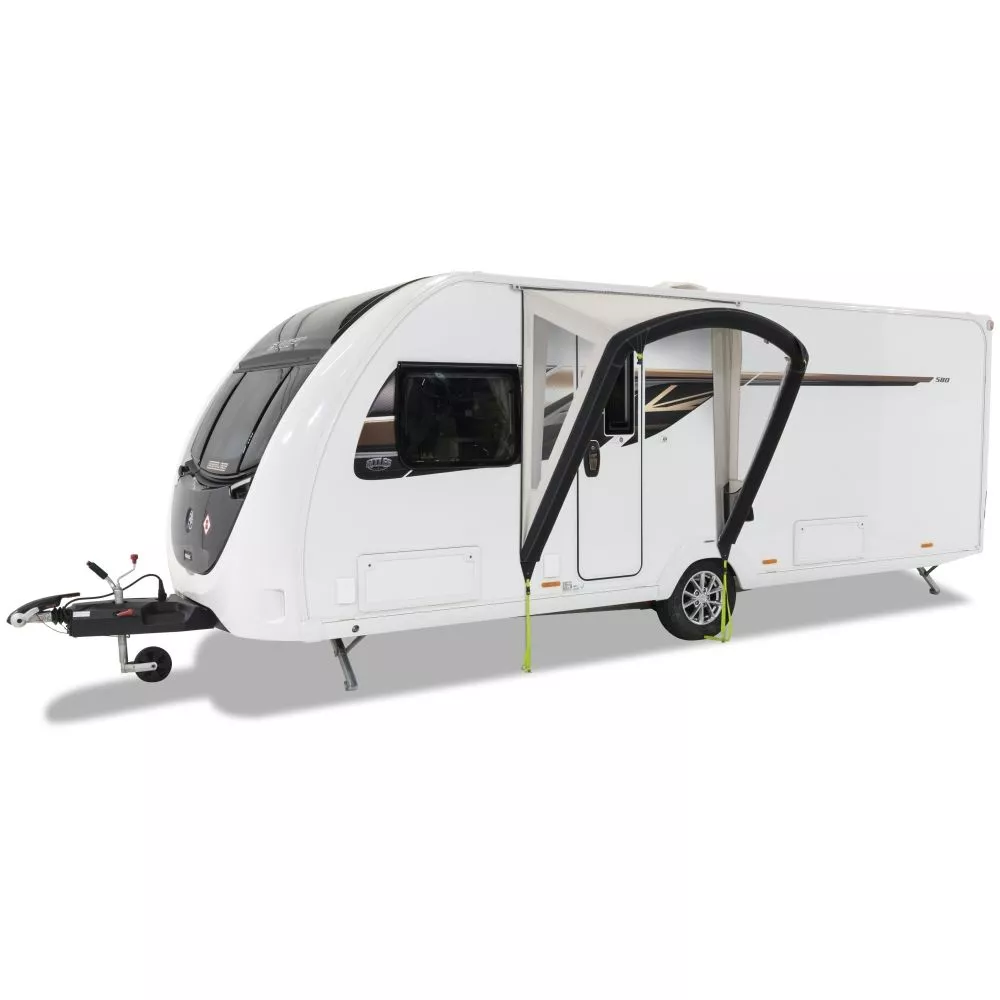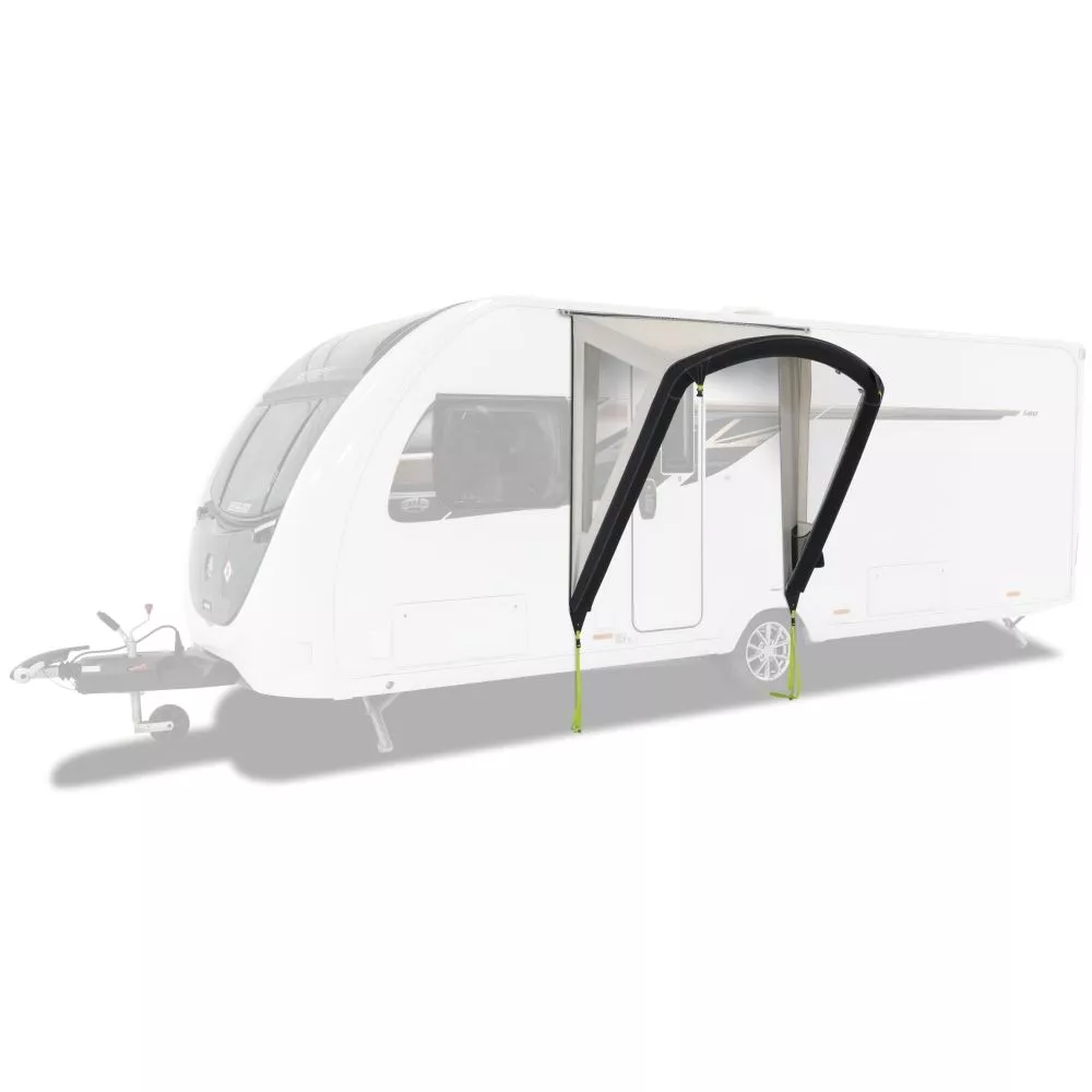 Das aufblasbare Dometic Portico AIR 180 S Caravan Türvordach bietet dank seiner hochwertigen und wasserdichten Konstruktion effektiven Schutz bei widrigem Wetter. Dank des robusten Air Frame Systems und der Kederverbindung zum Wohnwagen wird auch Soloreisenden der einfache Auf- und Abbau ermöglicht.