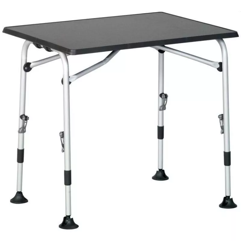 Der kleine Premium-Campingtisch Westfield Performance Aircolite 80 ist sehr leicht und zugleich extrem stabil. Die Tischplatte mit 80 x 60 cm bietet ausreichend Platz für zwei Personen. Die hochwertige Westfield-Light-Tischplatte überzeugt mit vielen Eigenschaften, die fürs Camping unerlässlich sind: absolut wasserabweisend, hitzebeständig bis 180° C, kratz- und stossfest, UV-beständig bei direkter Sonneneinstrahlung und leicht zu reinigen. Alle vier Tischbeine lassen sich per Schnellverschluss in der Höhe individuell anpassen und sind mit Tellerfüssen ausgestattet. Dies ermöglicht einen sicheren Stand, der (Vor-)Zeltteppich wird geschont. Die Tischbeine lassen sich unter der Tischplatte einklappen, dadurch bekommt dieser Campingtisch ein sehr kompaktes Packmass.