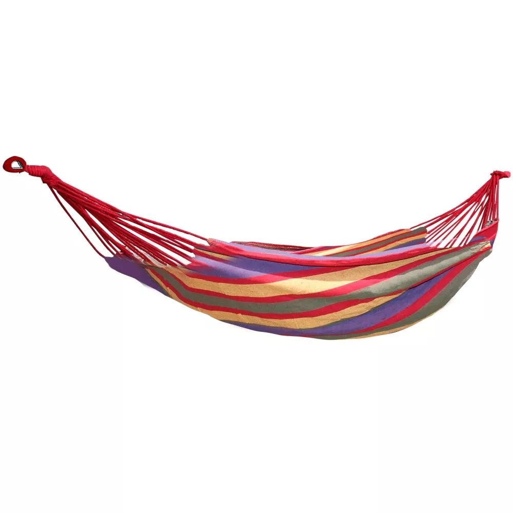 Mit der hochkomfortablen Hängematte Brunner Solead entflieht man sanft schaukelnd dem Alltagsstress. Im brasilianischen Stil vermitteln die warmen, sonnigen Farbtöne südamerikanisches Flair. Das weiche, hautfreudliche Baumwoll-Mischgewebe hält auch grösseren Belastungen stand und verleiht der Hängematte eine besonders lange Lebensdauer. Ein farblich abgestimmter Stoffbeutel ist im Lieferumfang enthalten.